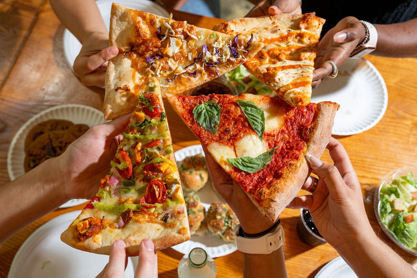 Find pizza by the slice or buy a whole pie!